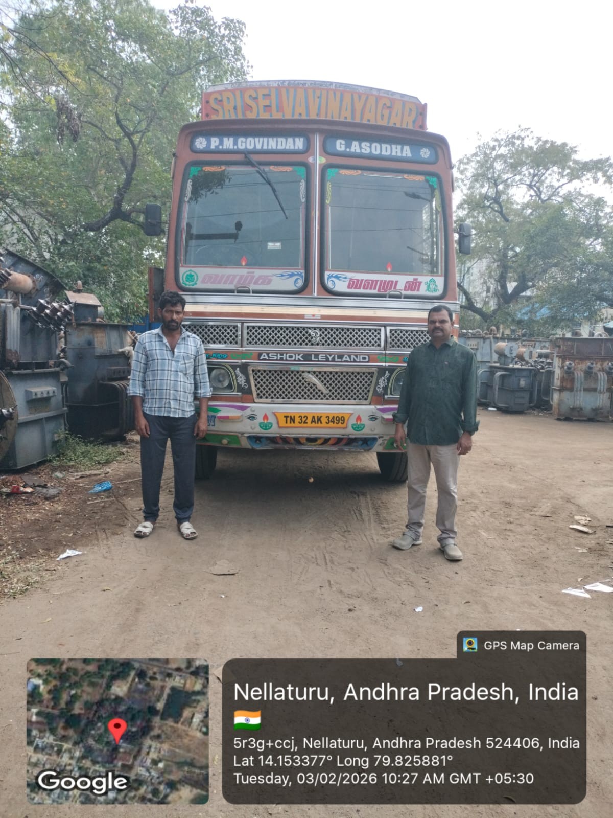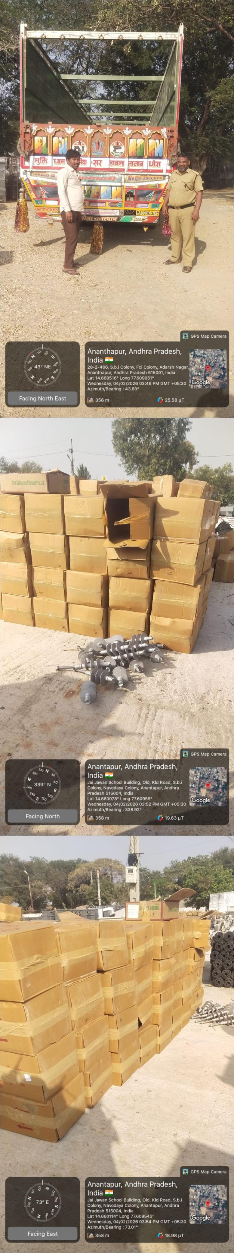 | 17 | 09.07.2025 | 5100008073 | 1 | 20/2025-26 | 212032 | Sri Siva Parvathi Projects&Construc | AAD-ADE 2 P&MM | FBE00024 | LT STUT AND SIDE ARM | EA | 29.01.2026 | 4100015549 | 1 | 15.08.2025 | GUDUR,ANDHRA PRADESH | 9440812012 | 1 | 500.000 | 02.02.2026 | SSPPC/25-26/0149 | NELLORE, Andhra Pradesh | 02.02.2026 / 12:56 | 60 | 02.02.2026 / 14:08 | SRINIVASULU | 9182603073 | AP39TH3653 | Download E-way Bill Copy | 9.289 | 5.120 | Empty Truck Weight At Vendor | 14.350 | 1000 | Truck Weight with Material At Vendor | 9.230 | 14.290 | 15078 | Truck Weight with Material At Store | 5.100 | Empty Truck Weight At Store | 9.190 | YES | 495 | 500 | Vehicle Photo | Download Received Material Photo | P.SESI | 02.02.2026 | 17:34 | Signed Acknowledgement | GURU PRASAD PULI | 7382623175 | ||