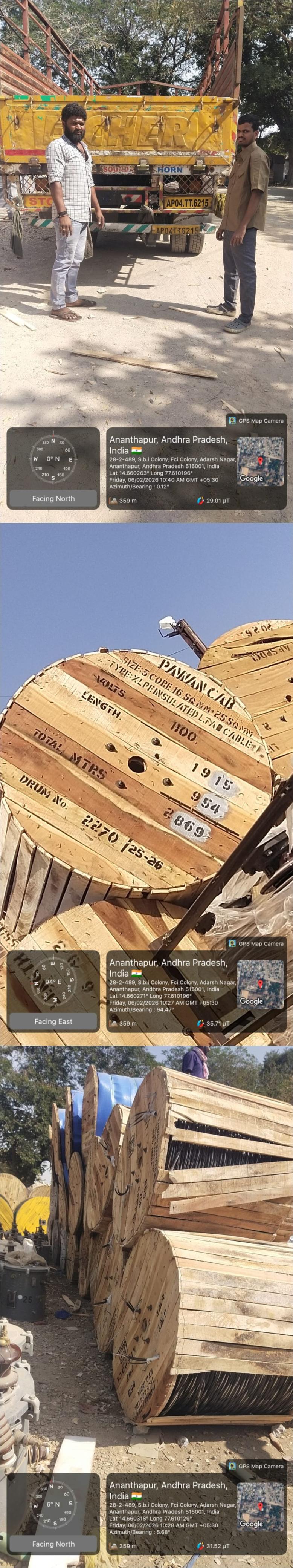 | 6 | 11.12.2025 | 5100008239 | 1 | SPMPT-109/ | 210133 | PAWAN POWER & TELECOM LIMITED | AAF-ADE 5 P&MM | CBX00027 | LT AB Cable XLPE 3C X 16+25 Sq. mm | M | 04.02.2026 | 4100015556 | 2 | 20.01.2026 | KURNOOL,ANDHRA PRADESH | 9440813326 | 1 | 23228.000 | 05.02.2026 | PPTL/25-26/453 | IDABollaramSangareddy, Telangana | 05.02.2026 / 12:29 | 223 | 05.02.2026 / 16:56 | GoyalTransportServices | 9949000485 | AP39TG6489 | Download E-way Bill Copy | 0.000 | 0.000 | No Attachment | 0.000 | No Attachment | 0.000 | None | No Attachment | No Attachment | None | 23228 | Vehicle Photo | Download Received Material Photo | S RAFIQ | 06.02.2026 | 18:00 | Signed Acknowledgement | GURUDIVAKAR REDDY B | 9492806725 | |||||||