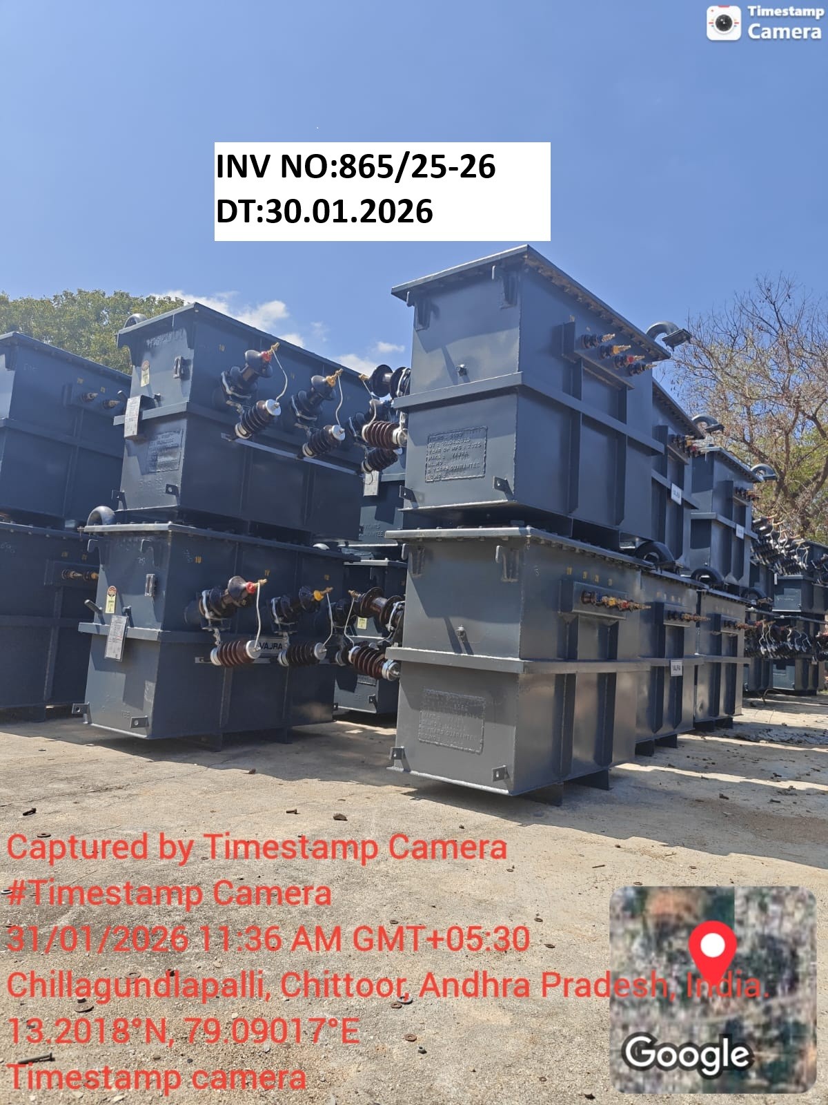 | 25 | 10.04.2025 | 5100007847 | 1 | SP:99/24 | 212399 | Vajra Transpower Pvt Ltd | AAA-ADE 3 P&MM | DTC30153 | 3PH 63 KVA DTR Amor /CRGO AL BEE 5 Star | EA | 28.01.2026 | 4100015544 | 2 | 31.10.2025 | CHITTOOR,ANDHRA PRADESH | 9440811853 | 2 | 8.000 | 30.01.2026 | 865/25-26 | Pashamailaram, Telangana | 30.01.2026 / 15:00 | 597 | 31.01.2026 / 02:56 | TRANSINDIALOGISTICS | 9121154544 | AP39U0730 | Download E-way Bill Copy | 0.000 | 0.000 | No Attachment | 0.000 | No Attachment | 0.000 | None | No Attachment | No Attachment | None | 8 | Vehicle Photo | Download Received Material Photo | Trans India Logistics | 31.01.2026 | 12:13 | Signed Acknowledgement | MOHAN RAO MURAHARI | 8985911893 | |||||||